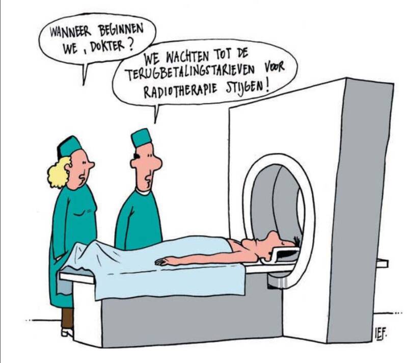Nou, gisteren was Mr Willy dus weer op date met de radioloog. En hoewel er veel gepraat werd over dat koppie van Mr. Willy, draaide het gesprek uiteindelijk toch om bestraling. En dan is er, in gezamenlijk overleg, besloten besloten om die ene uitzaaiing aan de ruggenwervel - een oude bekende die een paar jaar terug al eens onder handen genomen was – nogmaals te bestralen. Risicovol? Absoluut. Een heel wat grotere kans dat die wervel te zwak wordt wat dus een hoop narigheden kan veroorzaken en ook een sterk verhoogde kans op collateral damage. .Maar niets doen is geen optie. Dan zou dat onding blijven groeien en op den duur voor nog meer ellende zorgen. En nu al beginnen met chemo terwijl de abiraterone nog steeds ( min of meer toch) z'n ding doet, zou zijn als met een kanon op een mug schieten – niet doen dus dus.