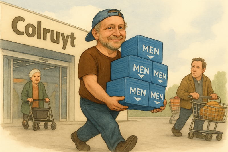 Incontinentiemateriaal, bijvoorbeeld. Dat vond je ergens achterin een zorgwinkel, tussen steunverbanden en glijlakens. Voor mannen was er niks. Of beter gezegd: er was wel iets, maar je moest het bijna fluisterend aanvragen, met een blik alsof je een gesluierde schaamte probeerde te kopen.