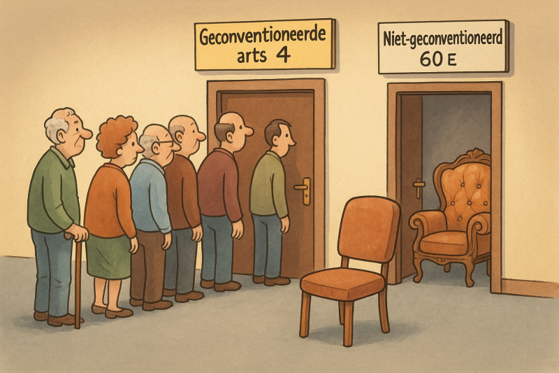 Een niet-geconventioneerde arts mag supplementen aanrekenen, soms tientallen euro’s bovenop de standaardprijs — en die betaal je zélf. Ook met verhoogde tegemoetkoming. En daar verandert dus niks aan.