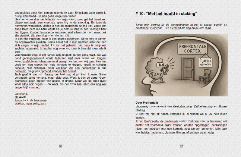In de nieuwste editie van De Prostaatpers krijgt u het volledige rapport, rechtstreeks uit mijn bovenkamer: een vertrouwelijk bericht van Prefrontalis zelf, de ouwe commandant van kalmte en nuance, die ons vanuit zijn bunker een noodsignaal stuurt. Geen paniekzaaierij (dat doet Amy al genoeg), maar een eerlijke inkijk in wat er gebeurt als je brein, onder vuur van kanker en pillen, stilletjes een andere koers inslaat.
