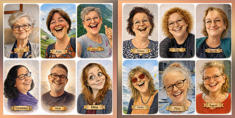 Intussen hebben tweeëndertig kankerlijers er een plek gekregen, netjes in karikatuur gegoten, met een rafelrandje en een naambandje.