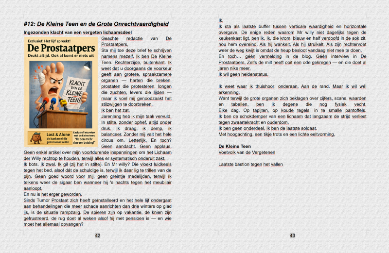 Lieve Lotgenoten , met gepaste eerbied en een lichte hink in de pas, presenteert De Prostaatpers vandaag haar nieuwste ingezonden klacht: